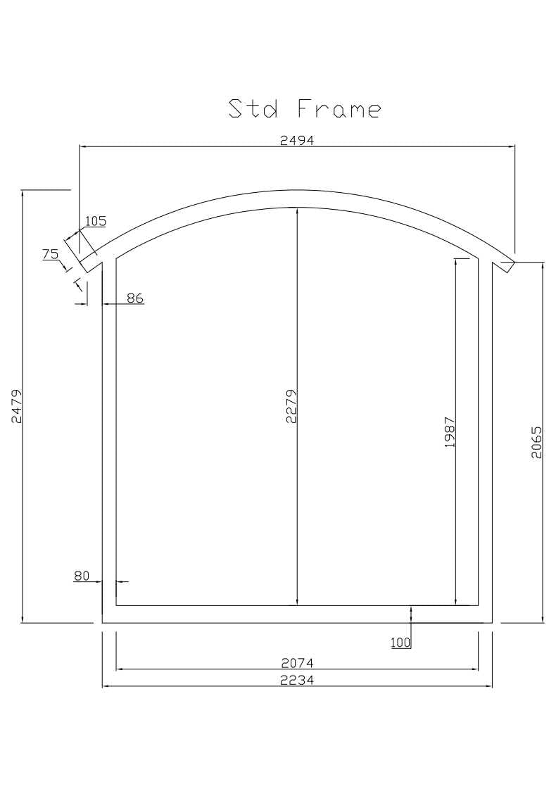 - Roof Arch Rise (Centre): 474mm