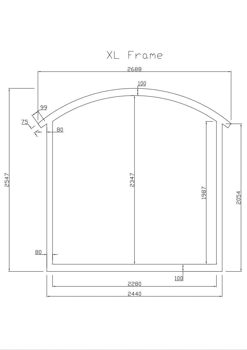 For reference along side your XL width frame dimensions, we have the roof dimensions used across our XL huts. The measurements give an idea into the classic curved roofline that accompany our huts.